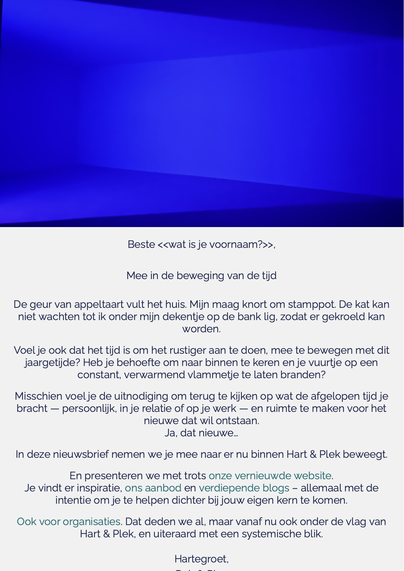 Hart & Plek begeleidt mensen, stellen en organisaties met een systemische aanpak. We maken patronen en dynamieken zichtbaar, zodat iedereen vanuit hoofd en hart zijn eigen plek kan innemen, ten dienste van het geheel en de delen.